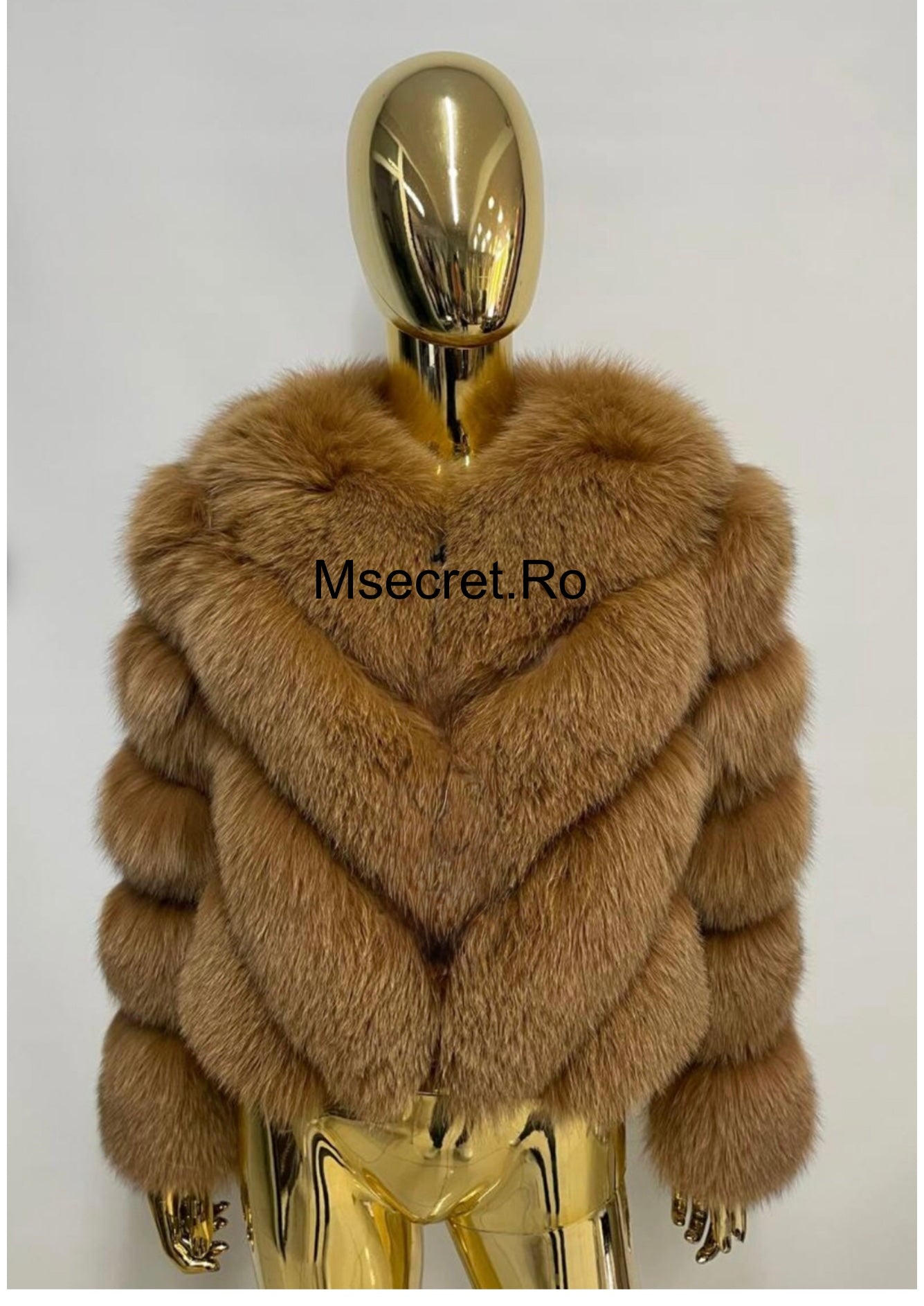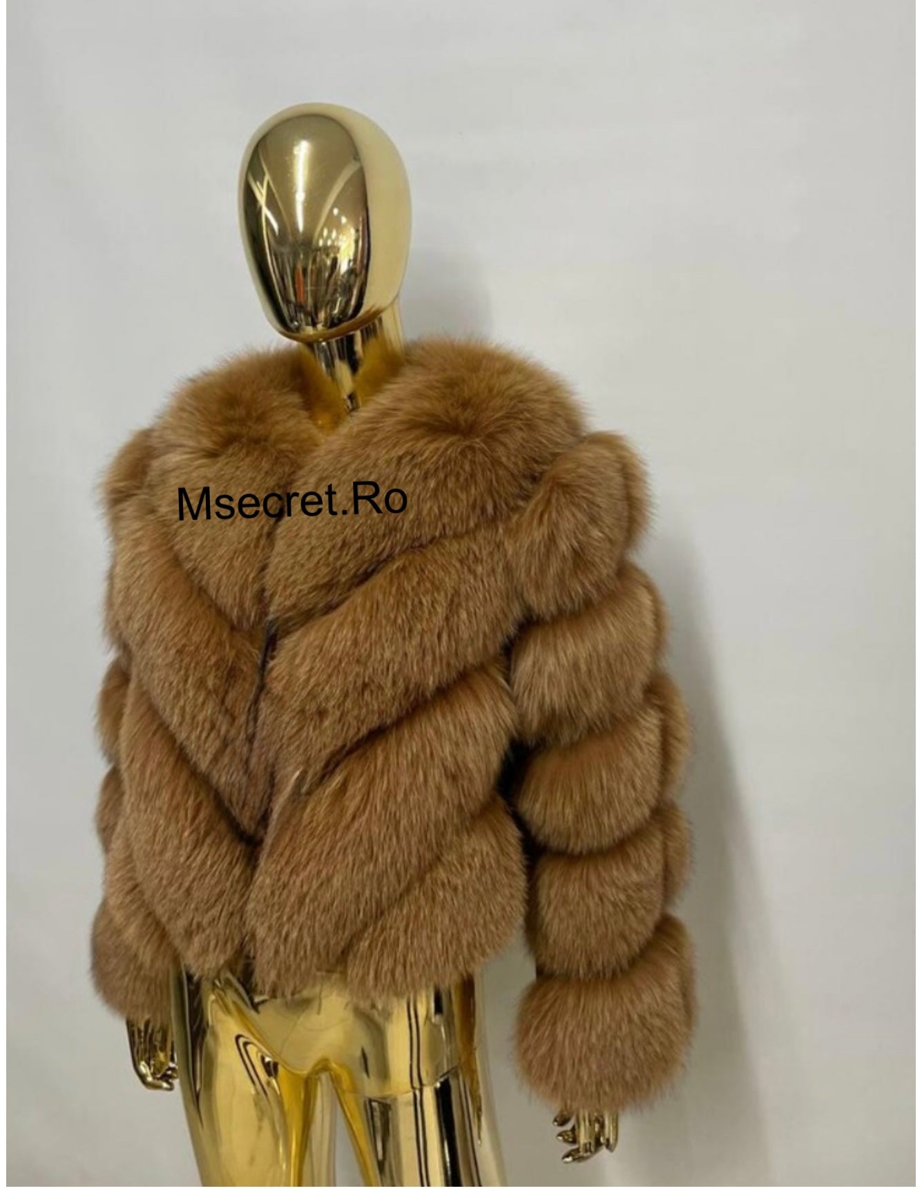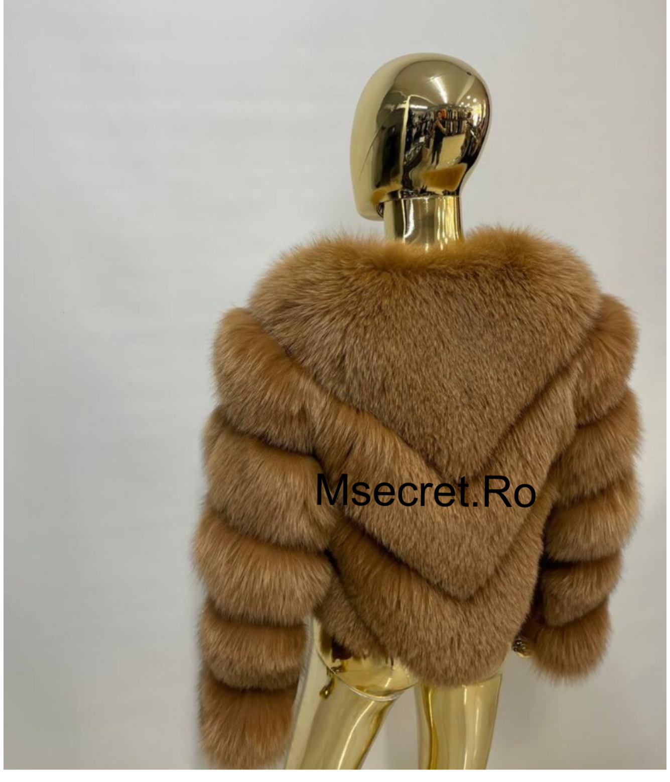 Realizată din blană naturală de vulpe de înaltă calitate, cu un luciu elegant și textură luxoasă