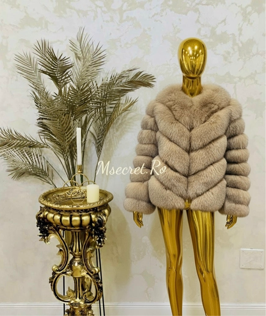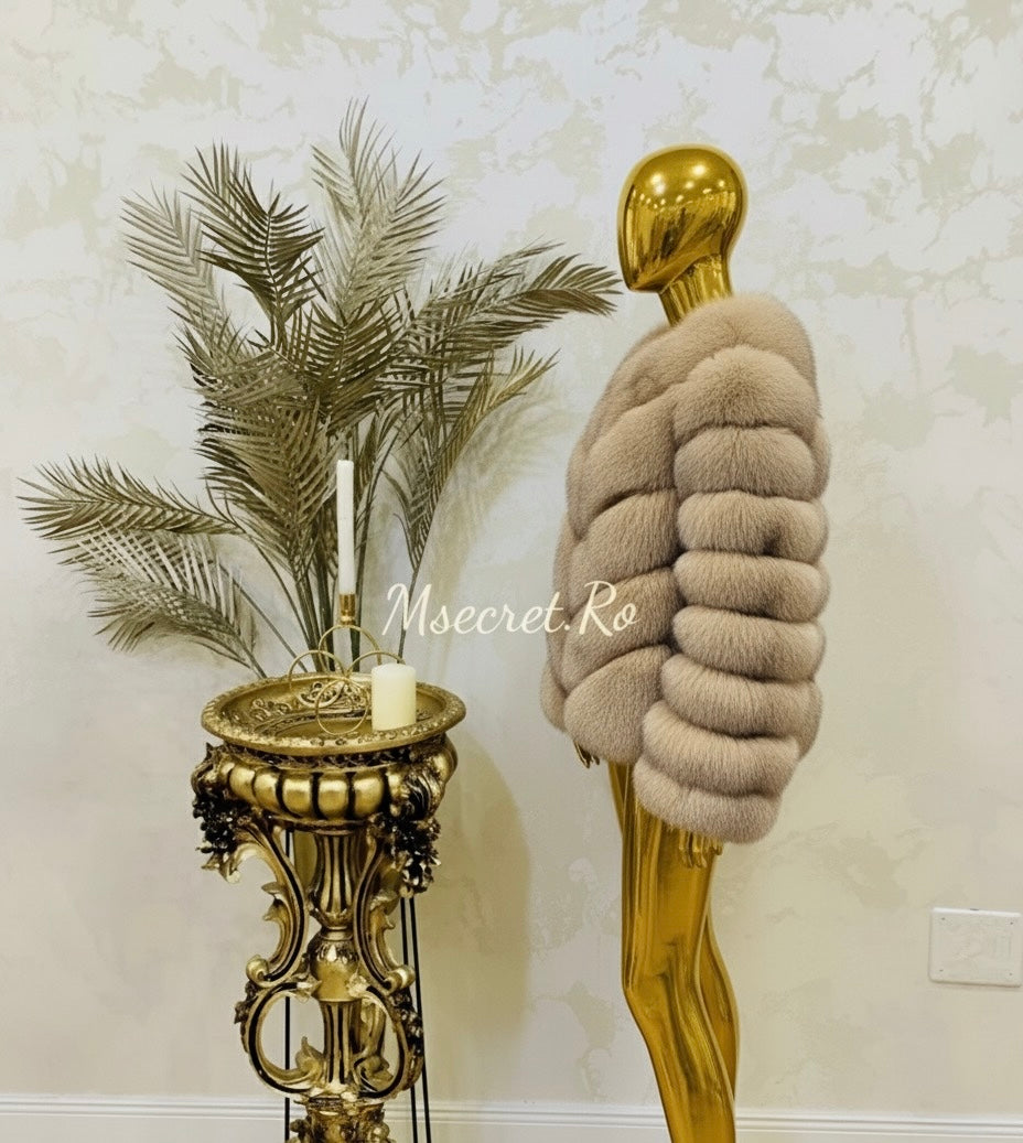 Realizată din blană naturală de vulpe de înaltă calitate, cu un luciu elegant și textură luxoasă