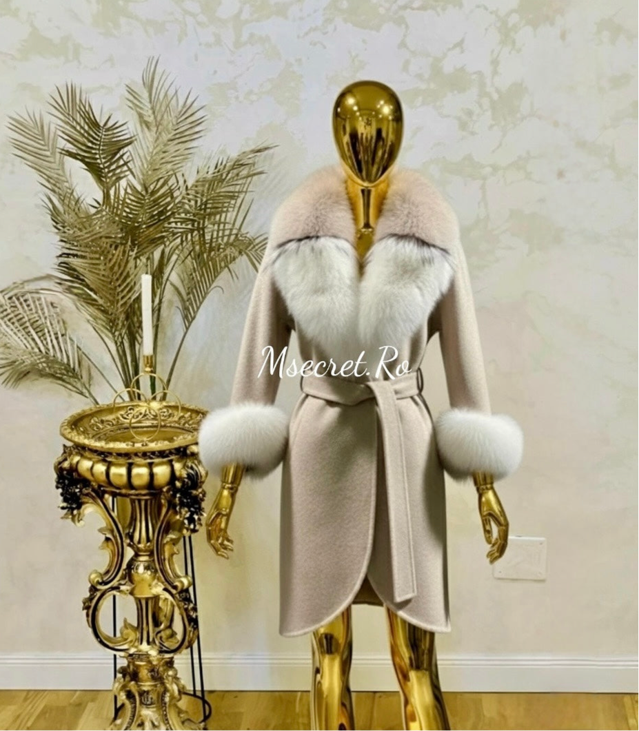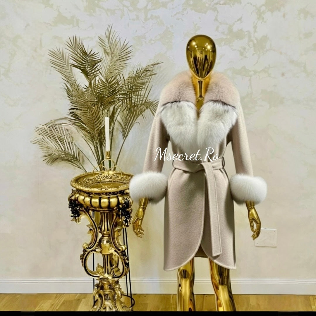 Acest palton din alpaca este o piesă de lux, ce îmbină perfect confortul cu eleganța. Spre deosebire de paltoanele din stofă obișnuită, acest model este realizat din fibre de alpaca de calitate superioară, oferind un aspect sofisticat și o senzație plăcută la purtare. Cordonul în talie permite ajustarea și subliniază silueta, oferind o notă feminină. Gulerul voluminos din blană naturală de vulpe adaugă un aer regal și o căldură suplimentară, fiind un detaliu statement care transformă paltonul într-o piesă unică. Buzunarele spațioase sunt ideale pentru a-ți ține mâinile la căldură sau pentru a păstra obiectele de care ai nevoie. Acest palton este perfect pentru femeile care caută o alternativă premium la paltoanele tradiționale, aducând un plus de stil și rafinament oricărei ținute de iarnă!