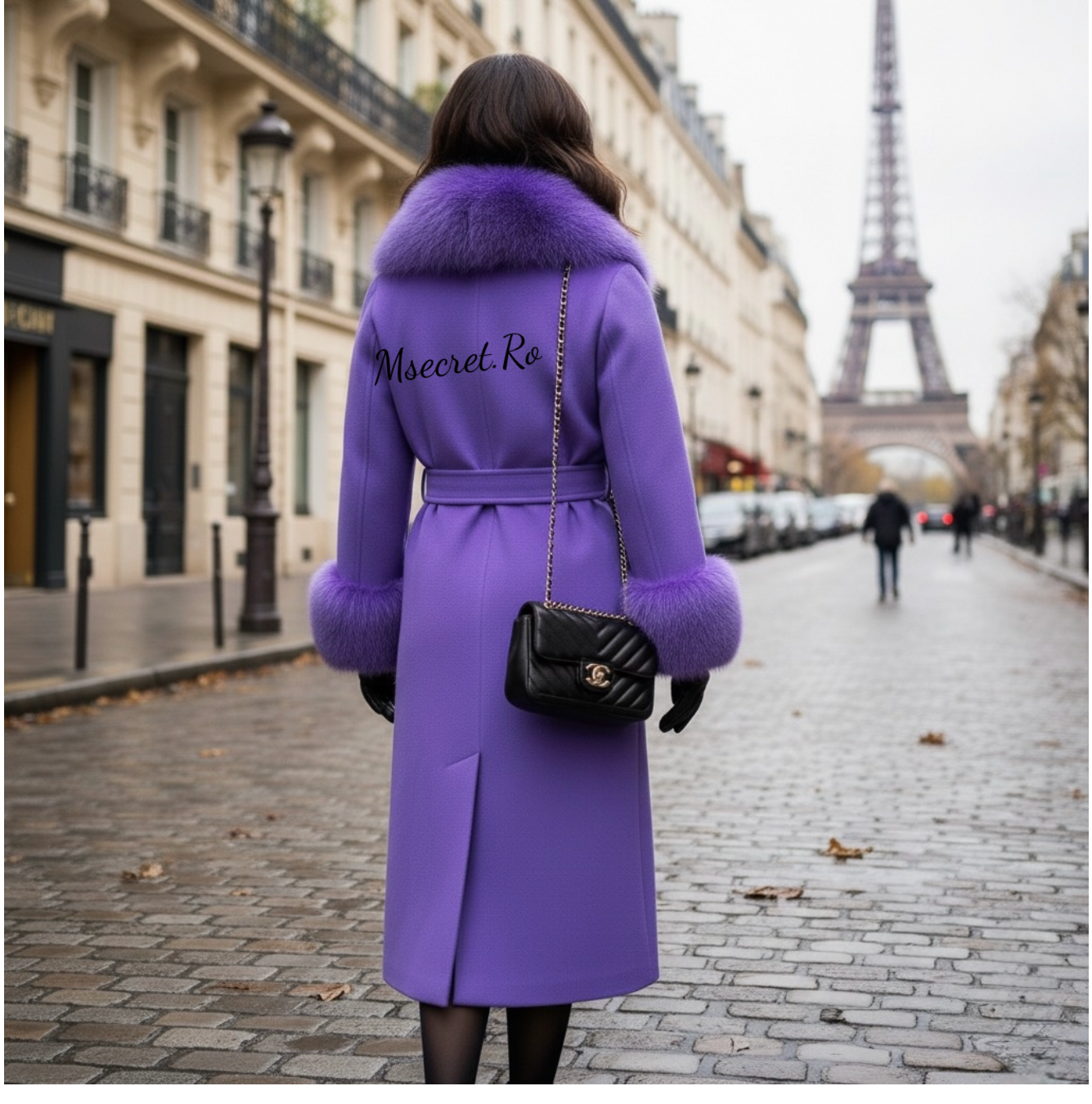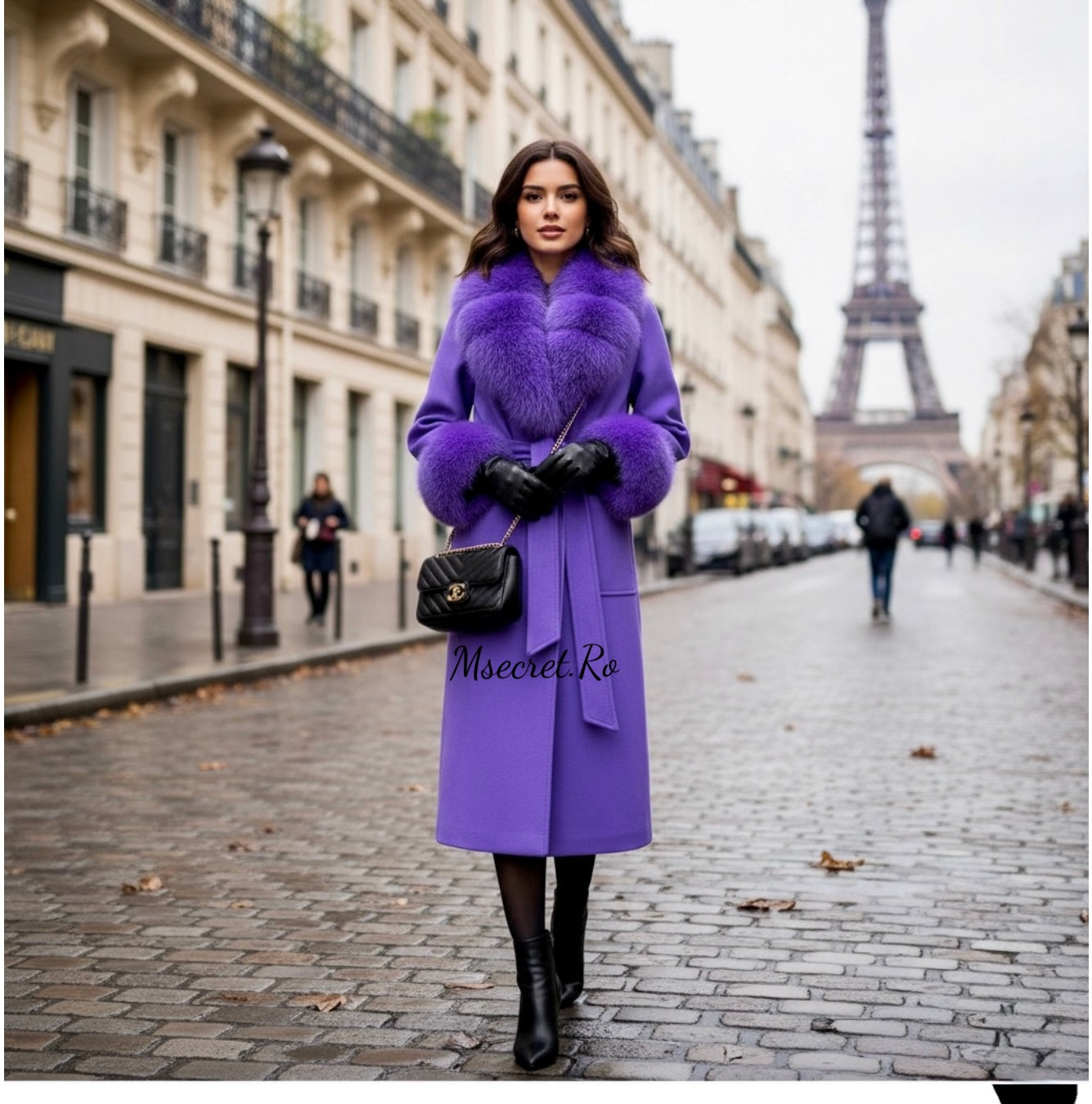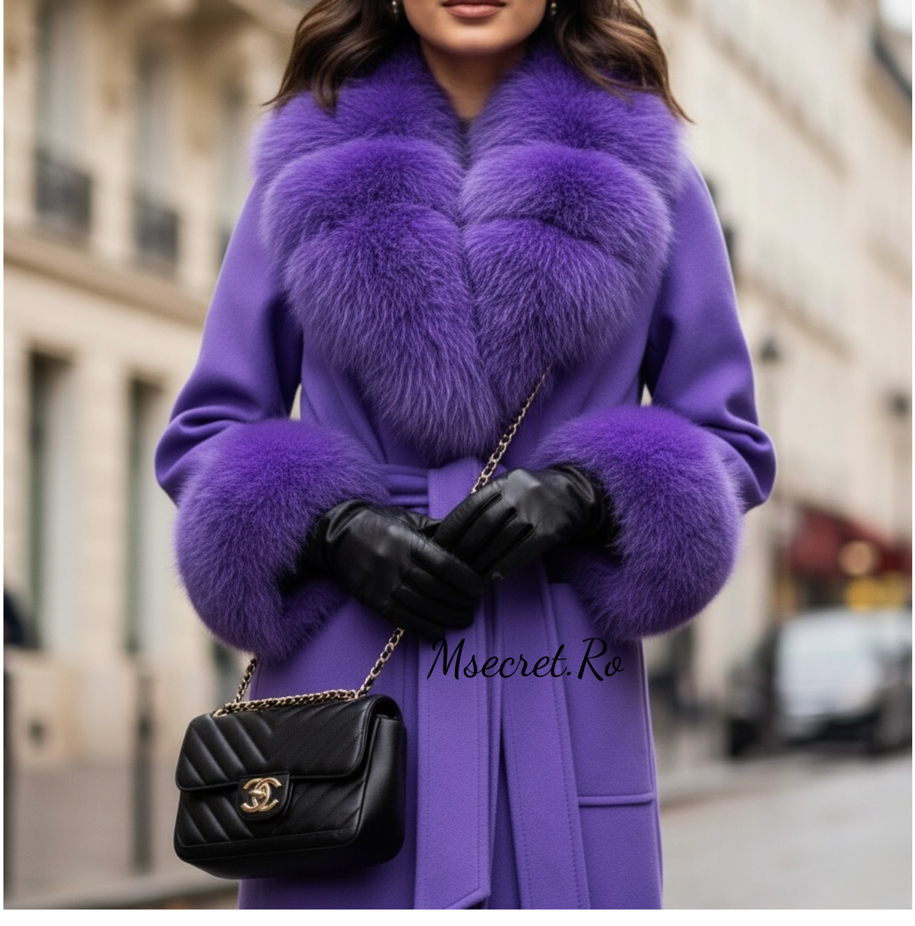 - Blana naturala de vulpe la guler si mansete – ofera volum, rafinament si o nota luxoasa.