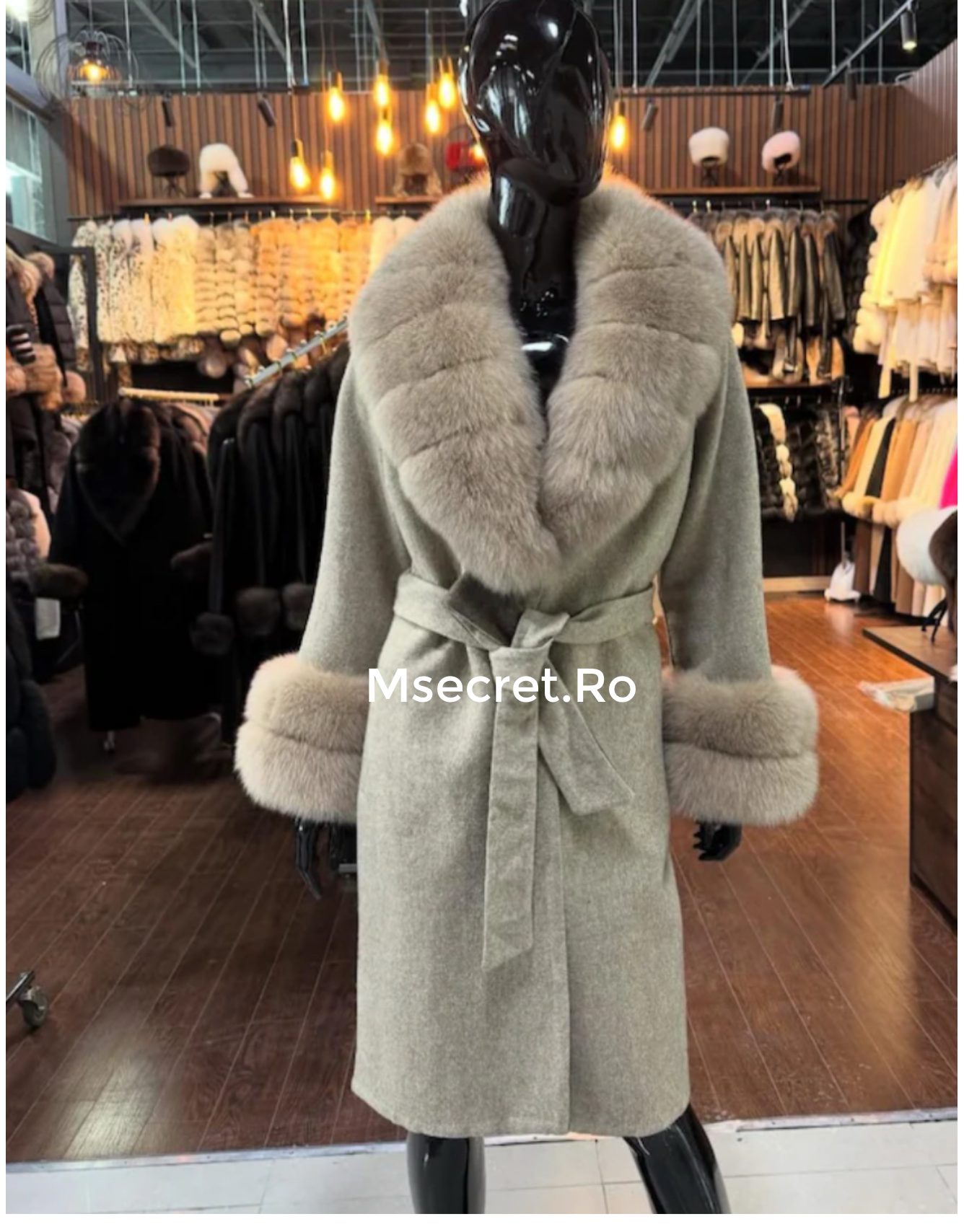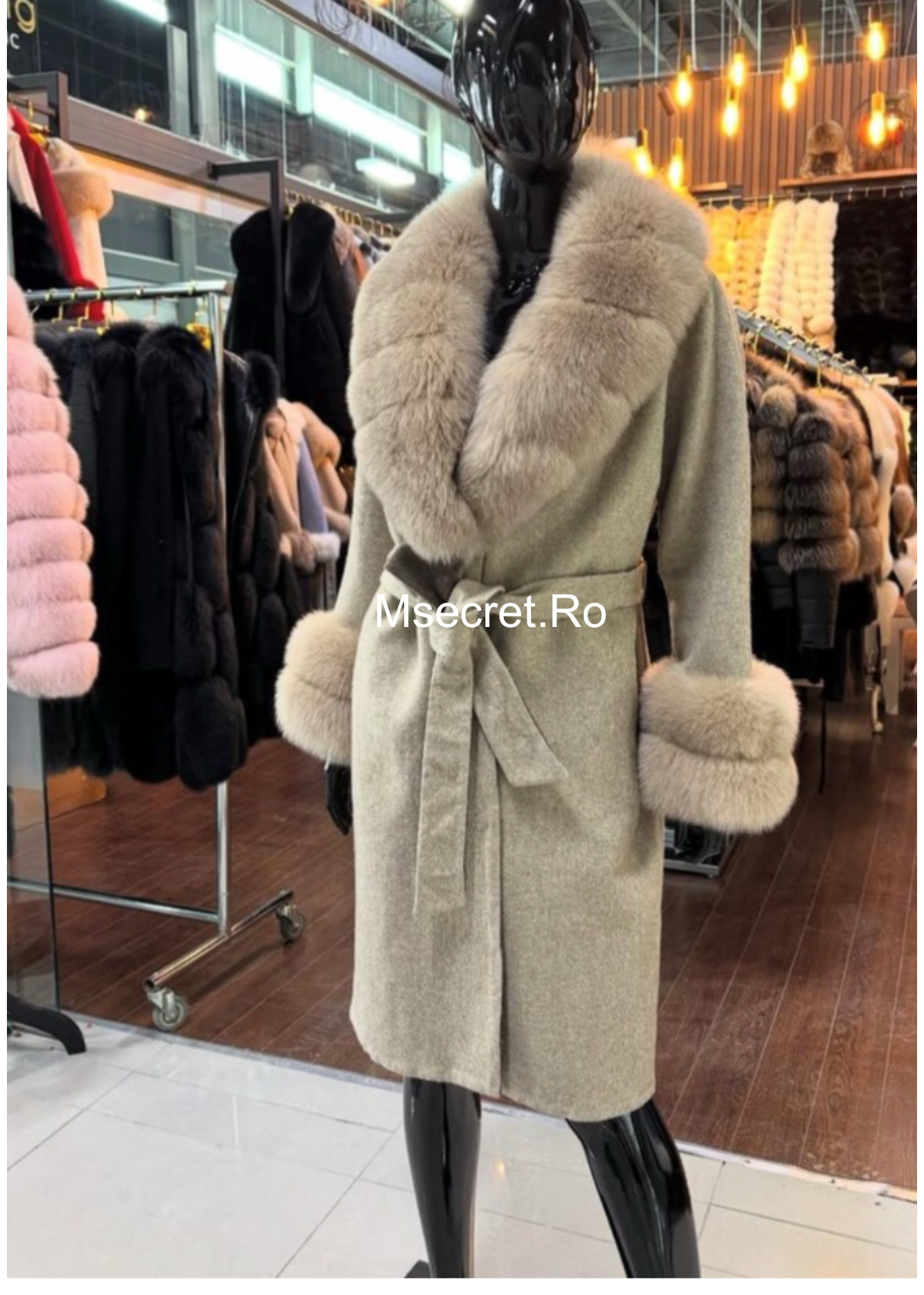 Palton din casmir cu blana naturala detasabila