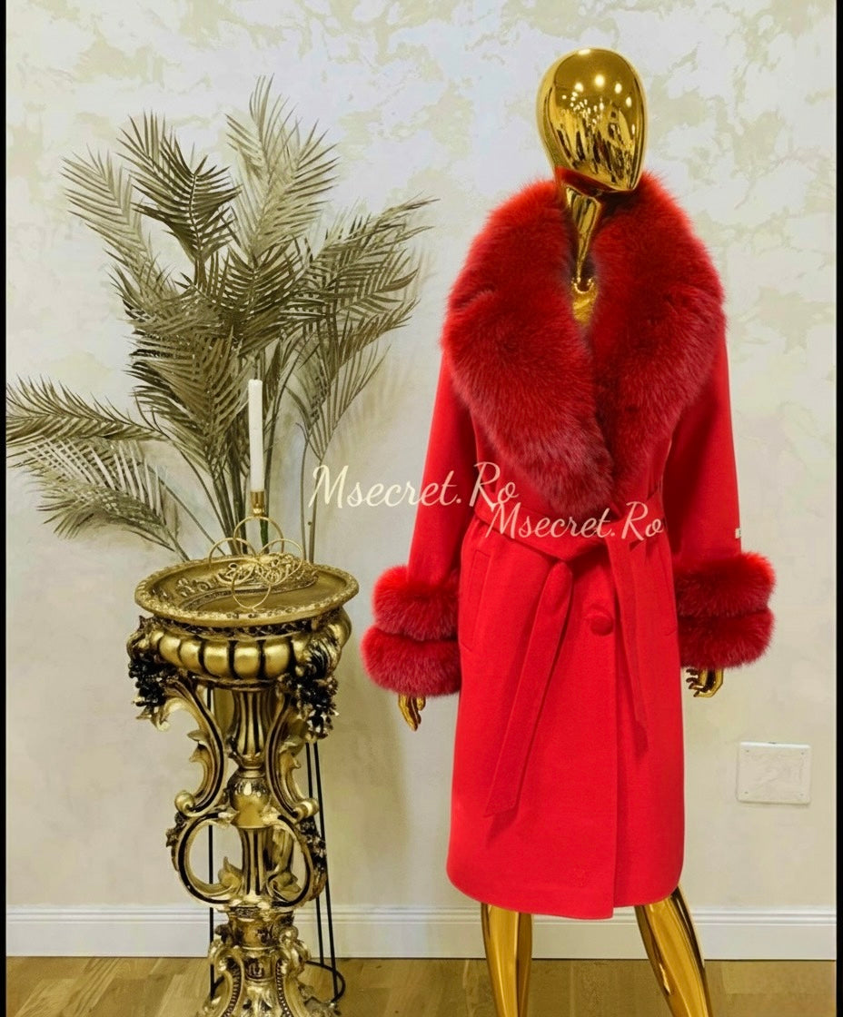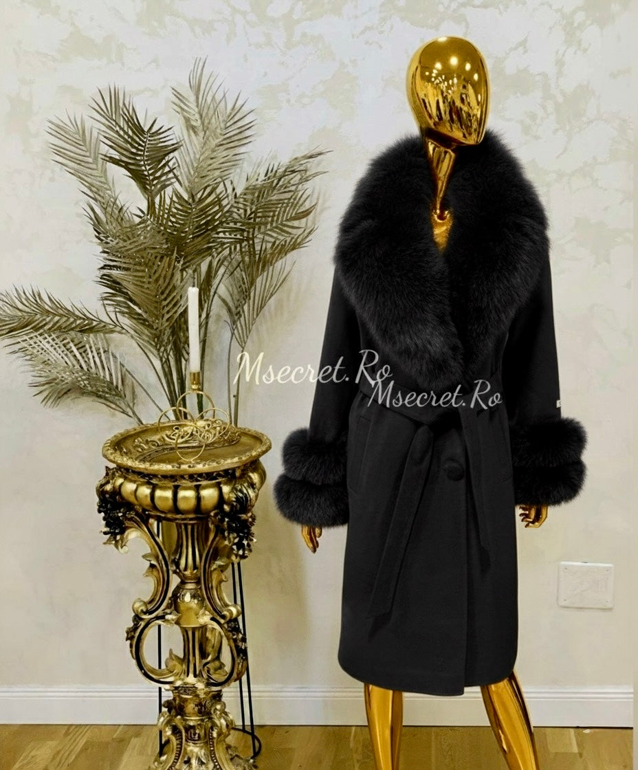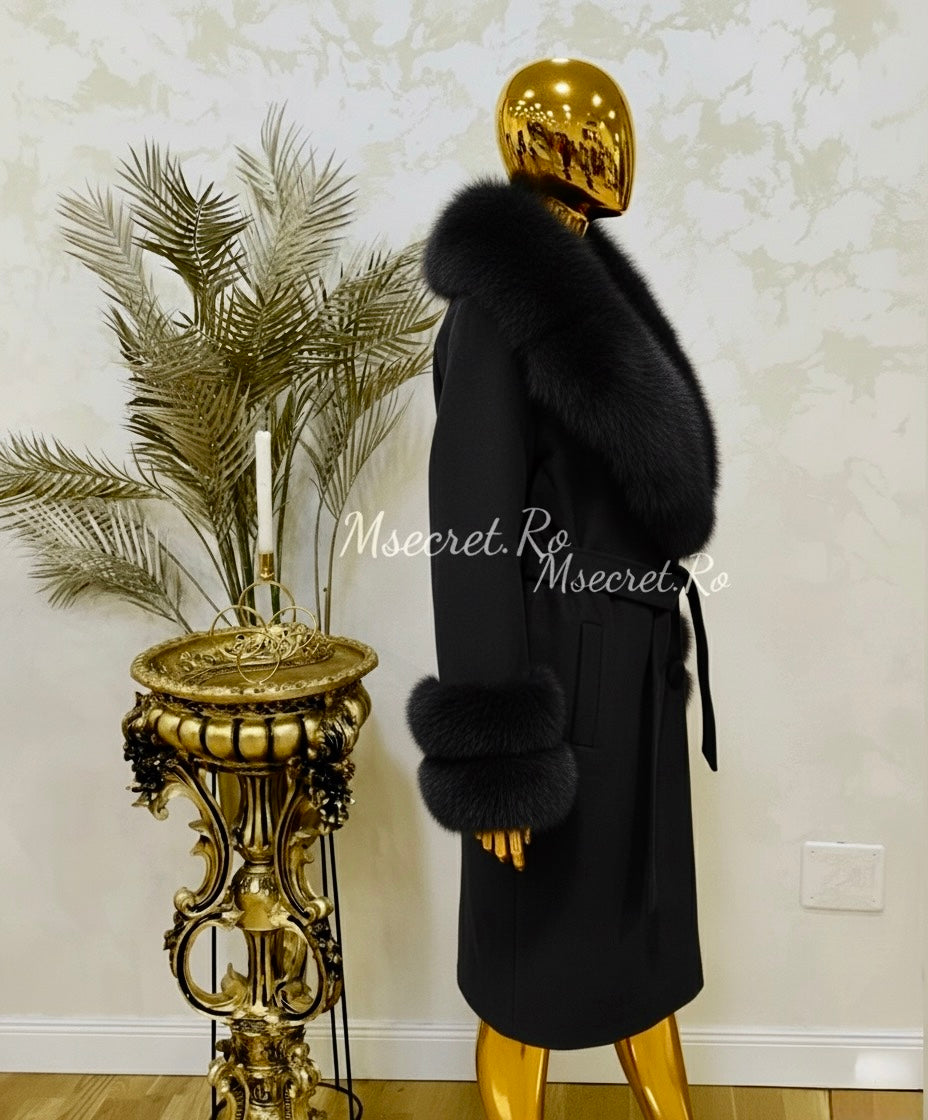 Palton din casmir cu blana naturala detasabila