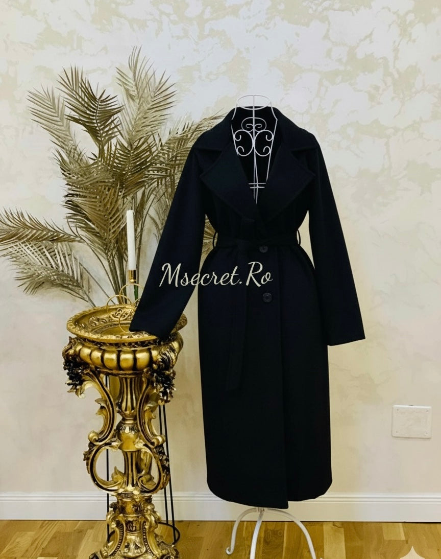 Palton negru cu talie reglabila