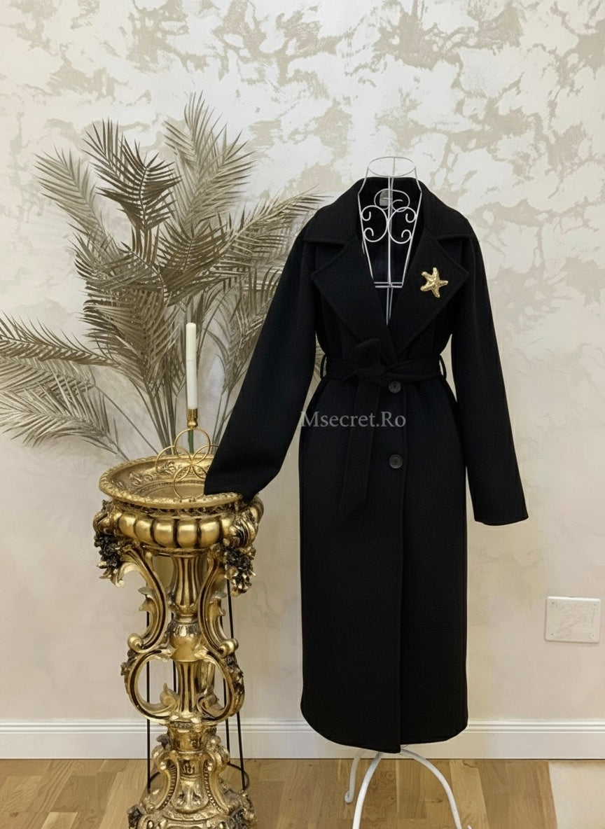 Palton negru cu talie reglabila