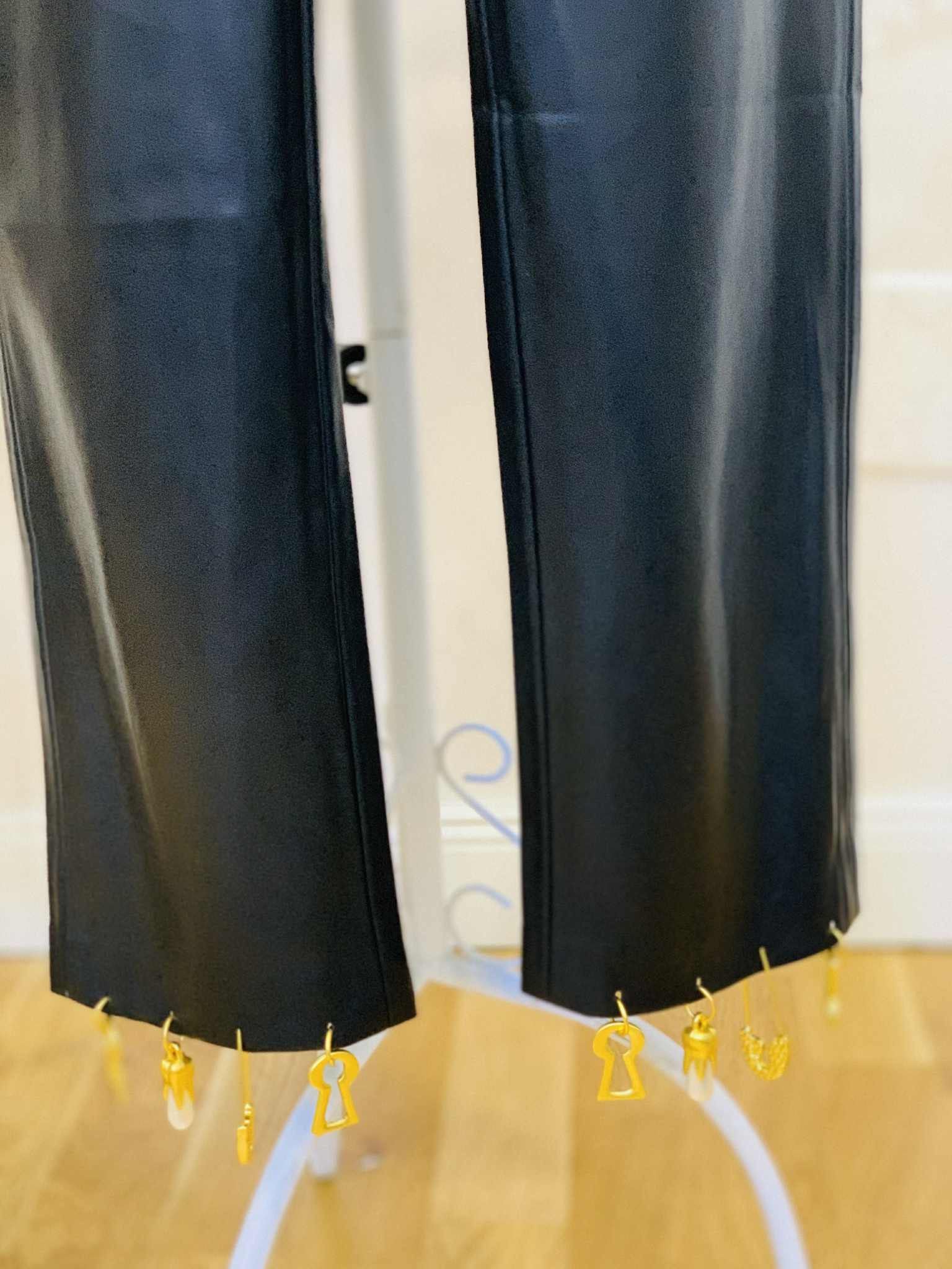 Pantaloni negri de piele cu agrafe aurii, piele manusa, moale, talie elastica
