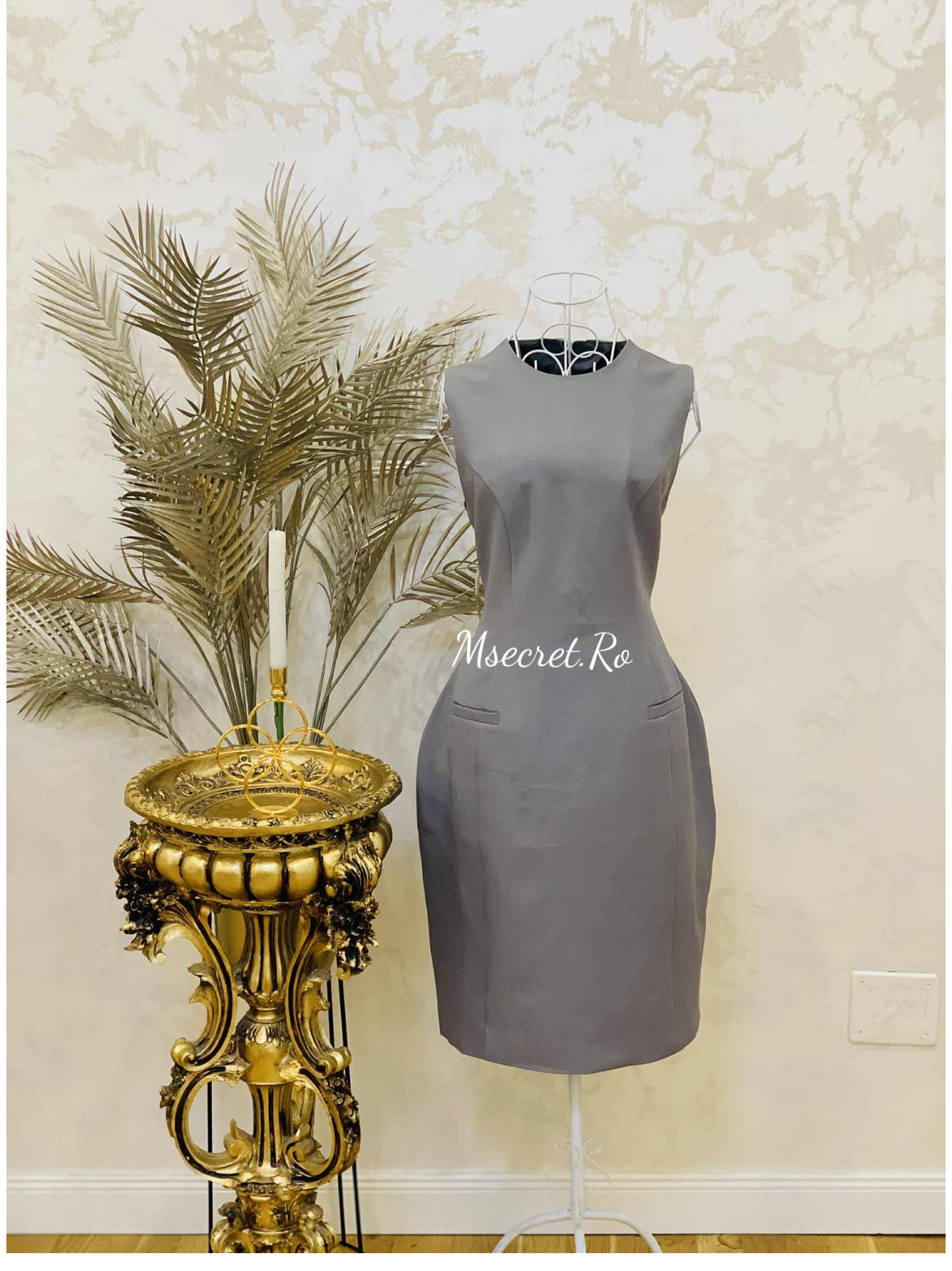 • două variante de purtare: simplă, ca rochie gri minimalistă, sau cu capeletul gri pentru un efect sofisticat și rafinat;