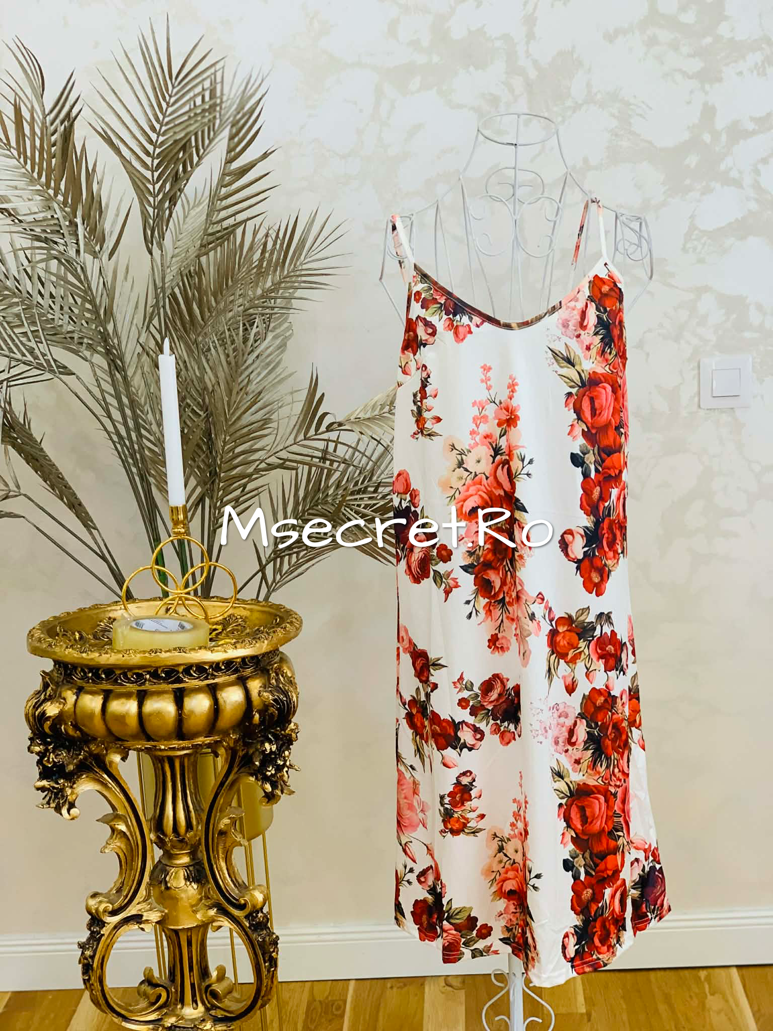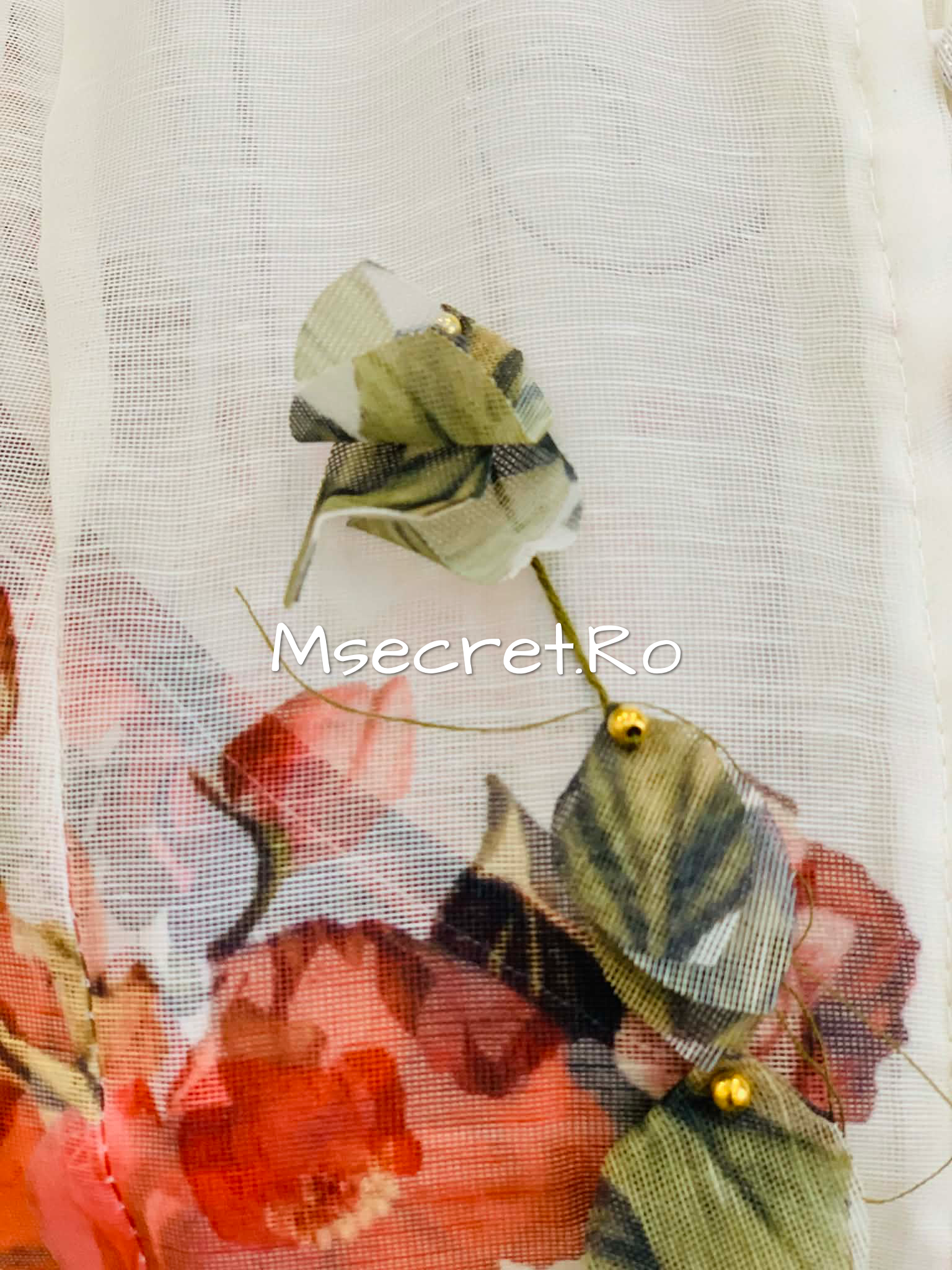- Imprimeu floral în nuanțe de rosu și tonuri neutre