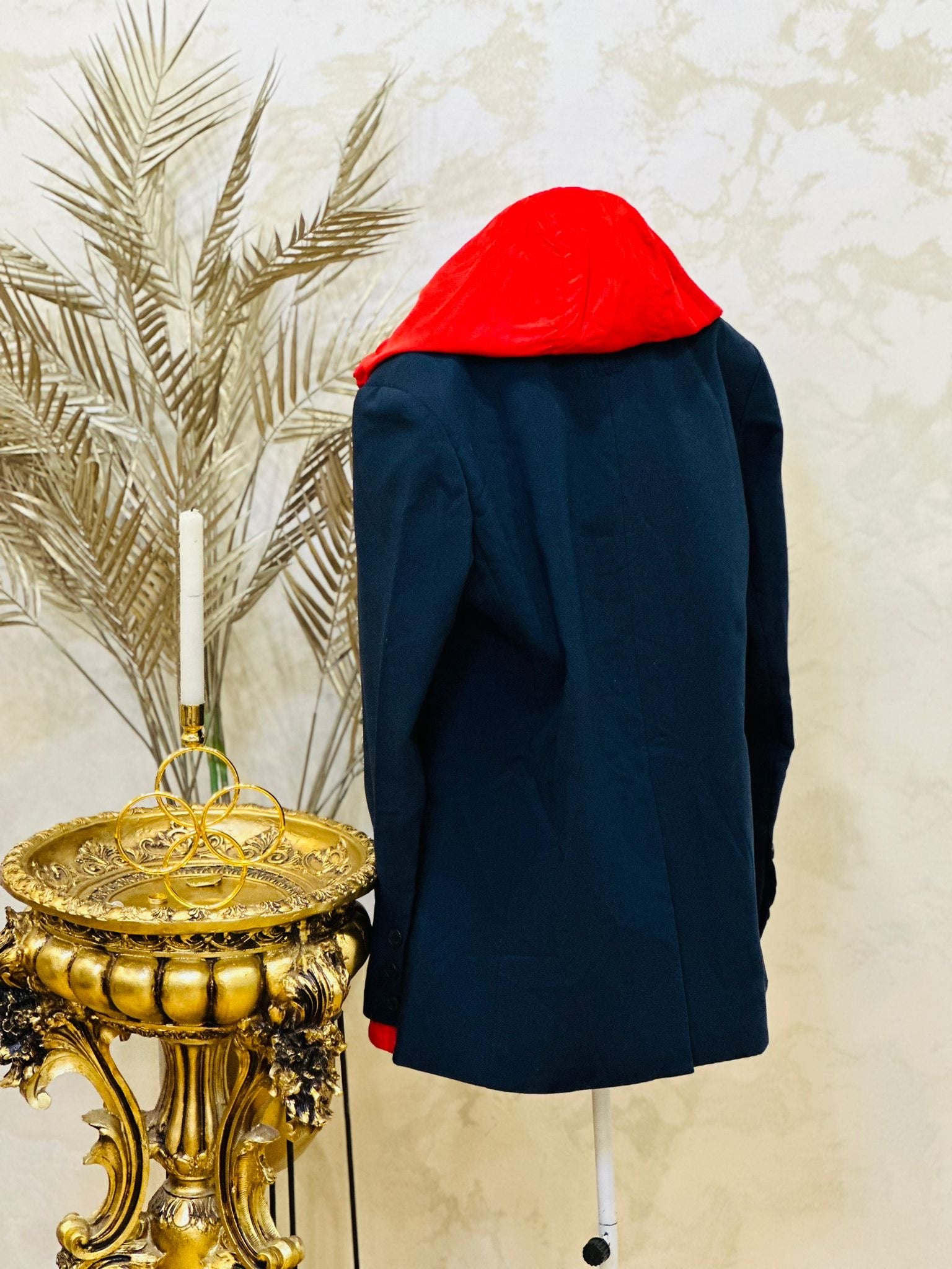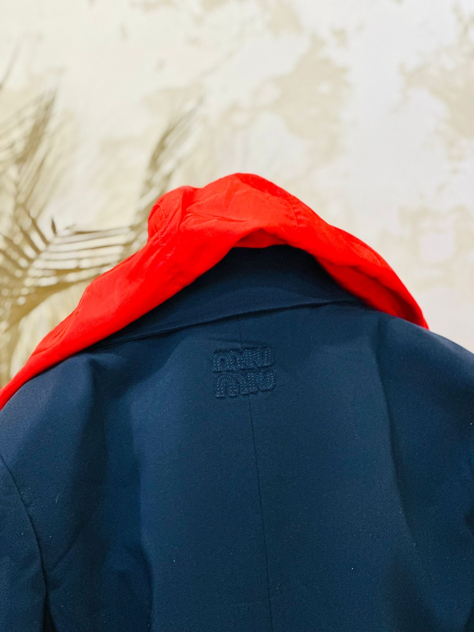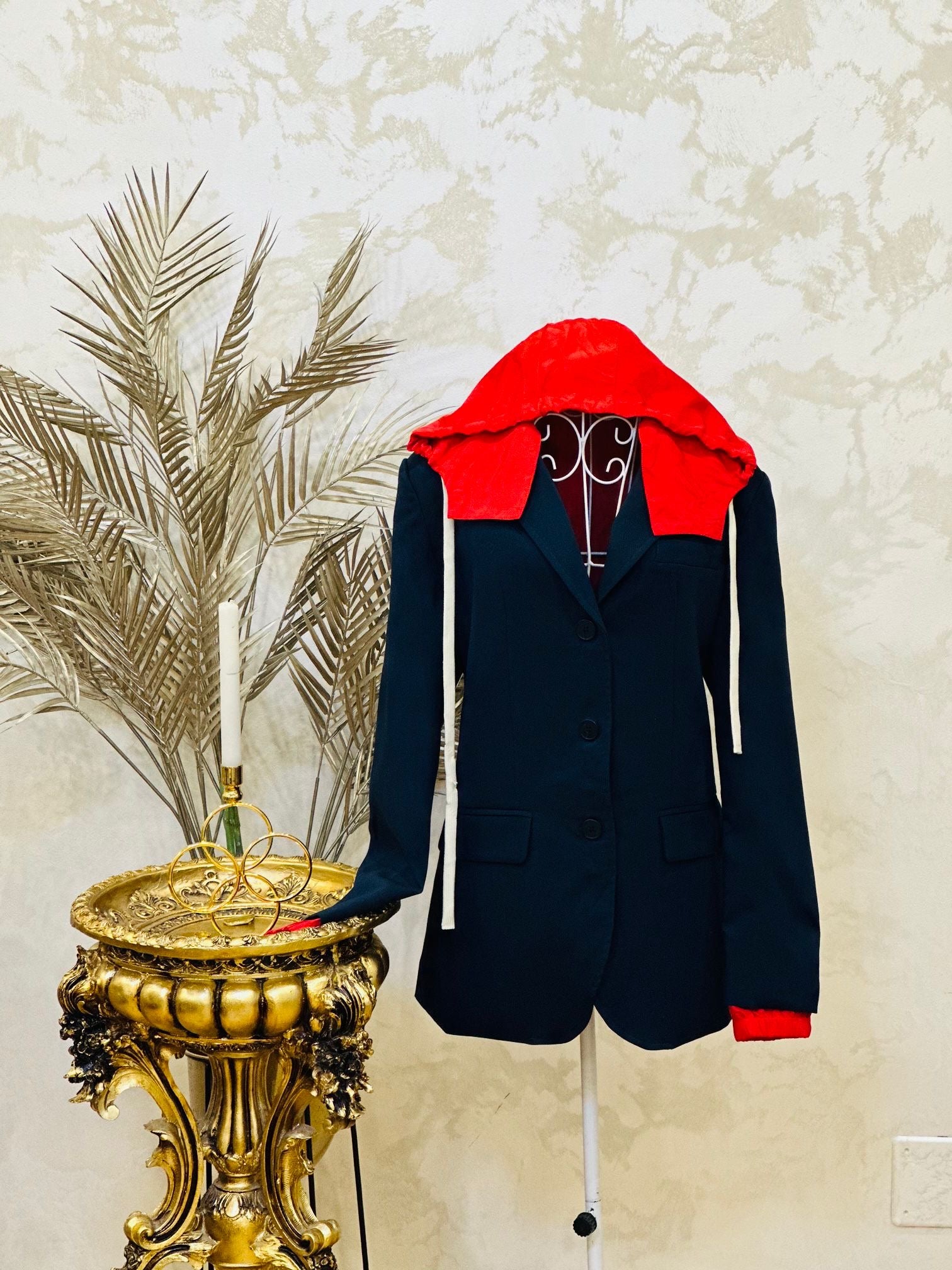 Sacou Bleumarin cu Glugă Roșie Miu