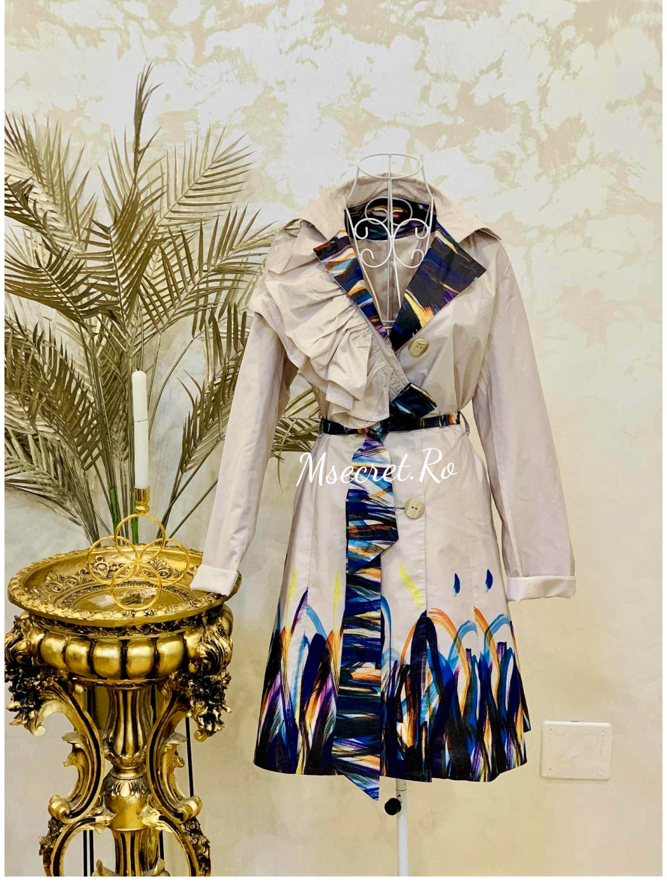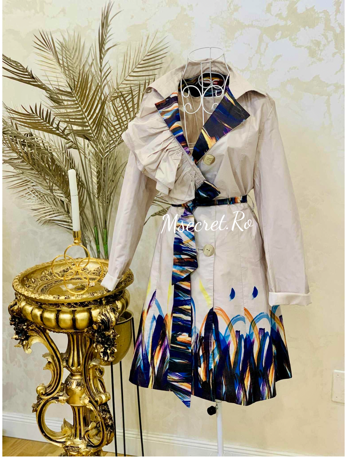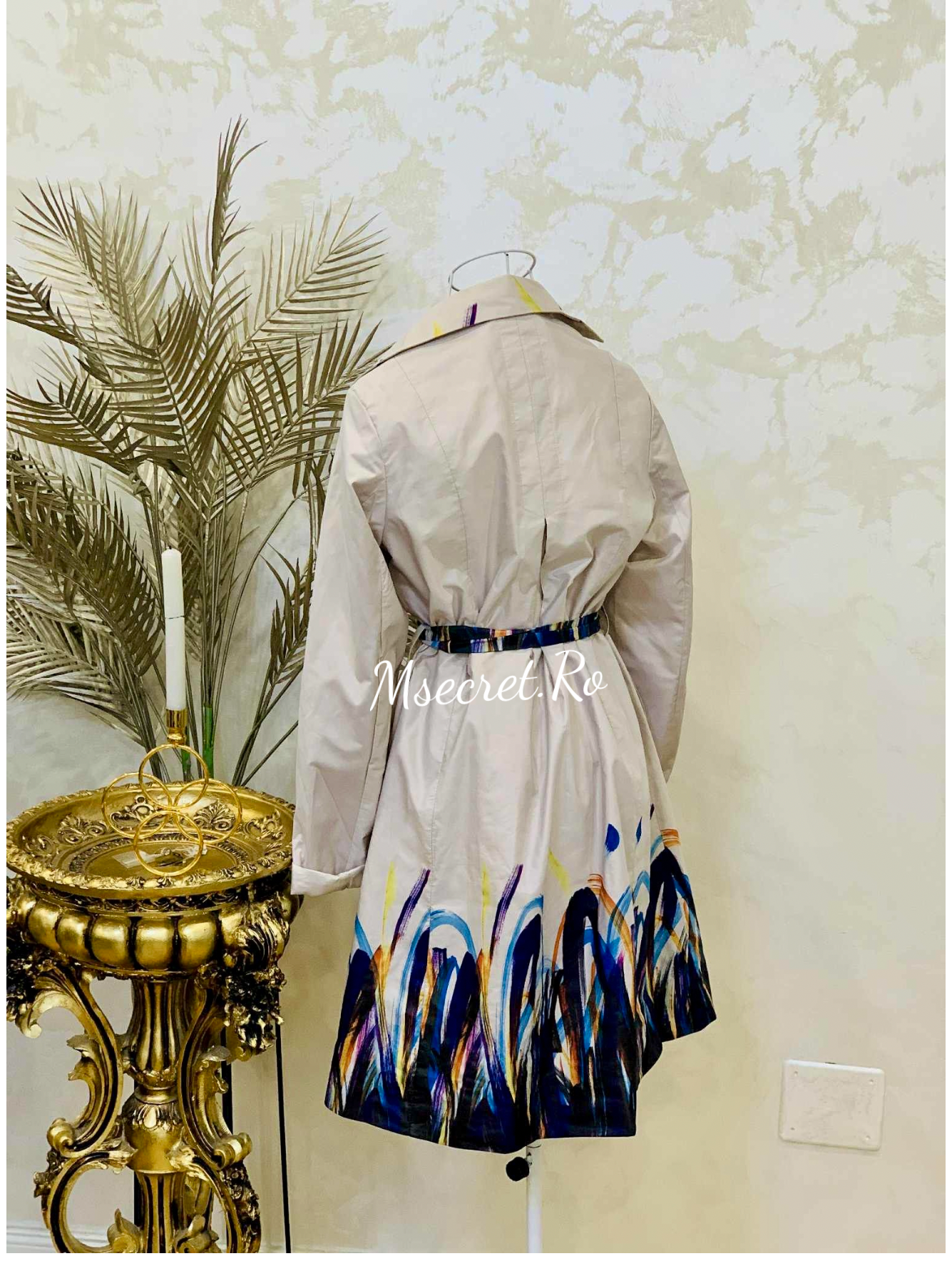 Trench satinat cu imprimeu artistic