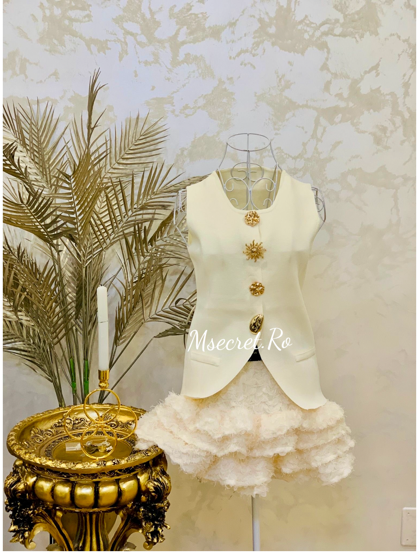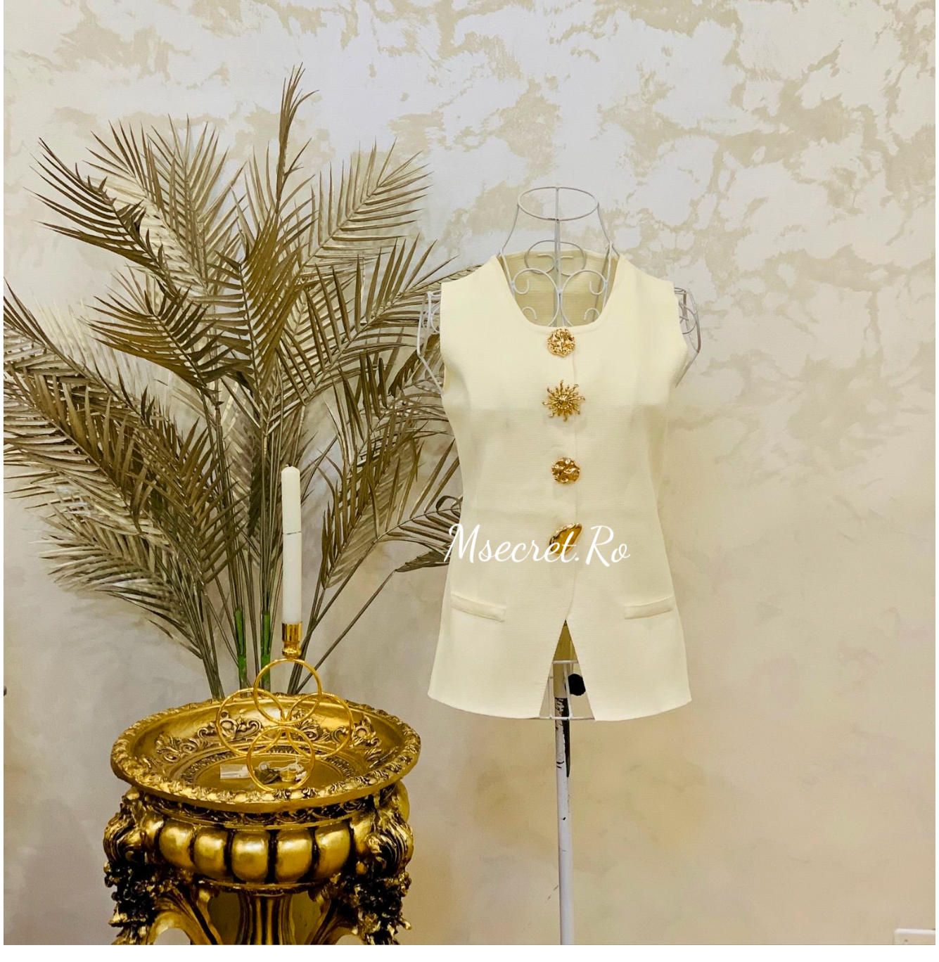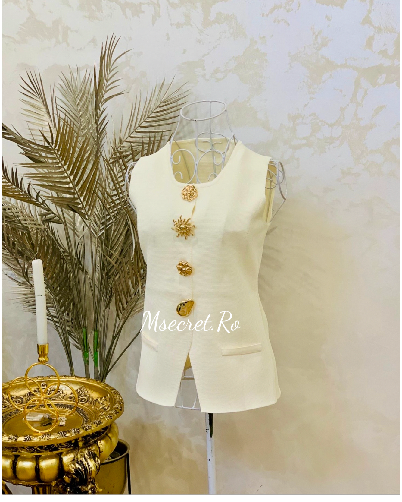 - Închidere cu nasturi statement aurii, tip bijuterie